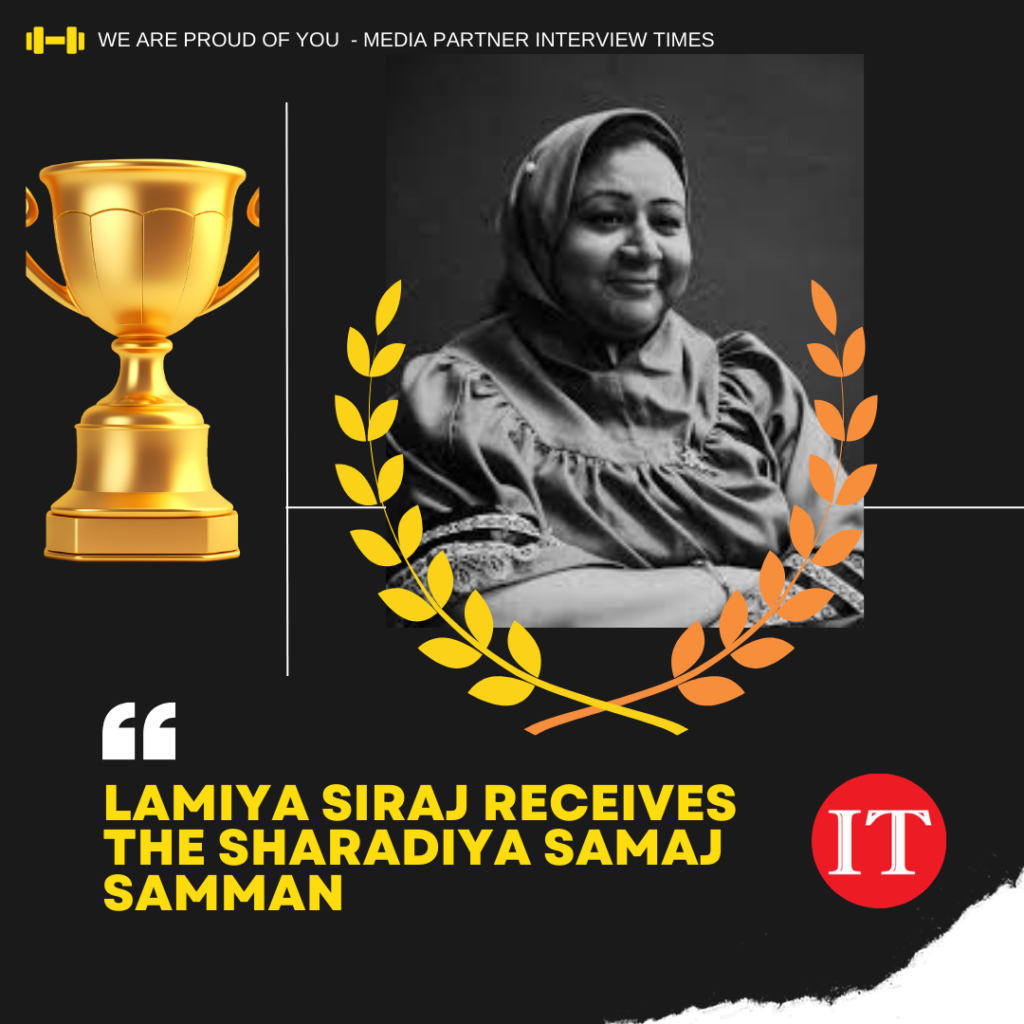 “I am deeply honored and humbled to receive the Sharadiya Samaj Samman,” said Lamiya Siraj